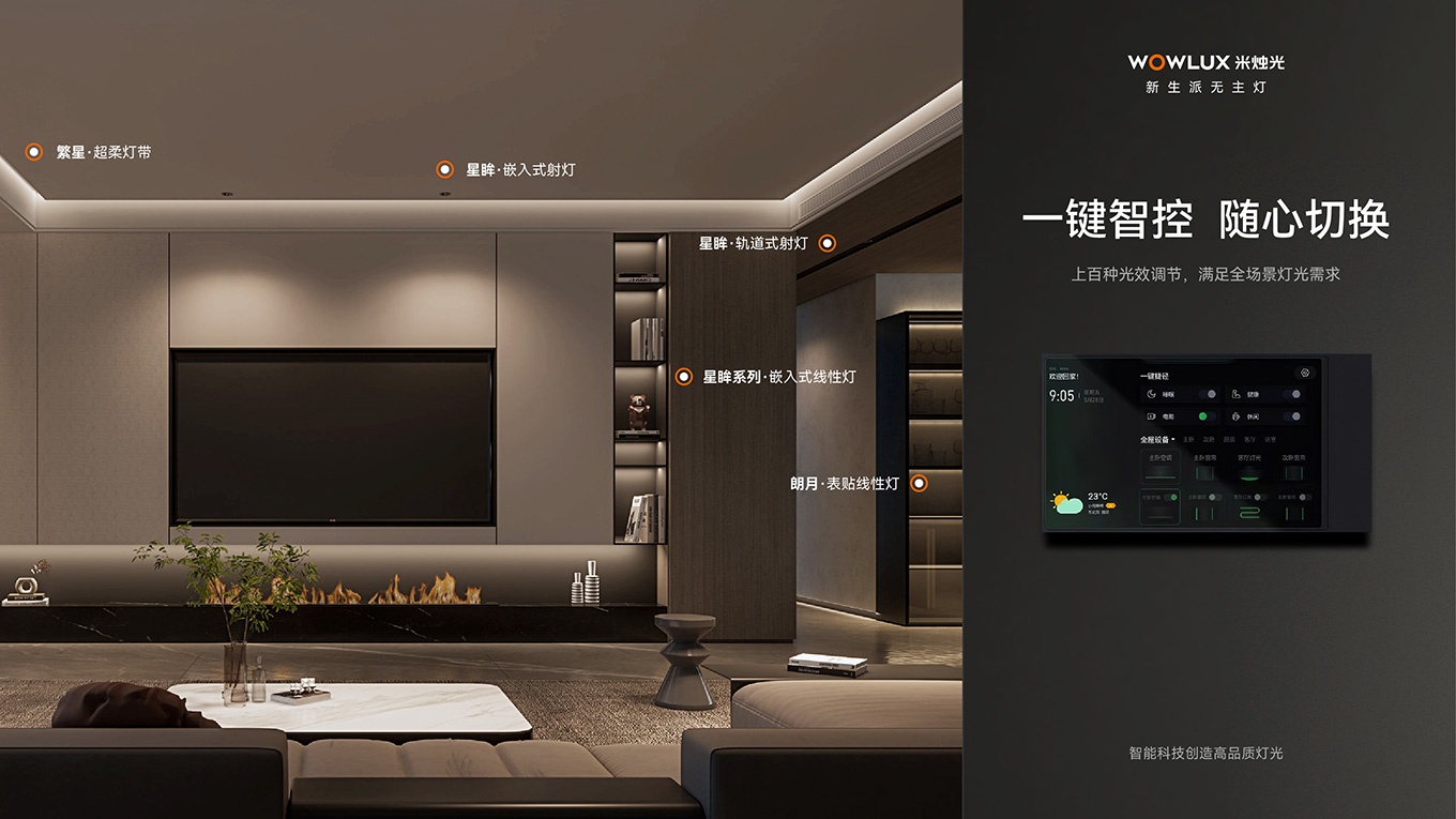 越宏集團全力打造的 WOWLUX 米燭光,是智能照明的全宅智能無主燈品牌。堅持 “讓光有情,讓光懂你”,為家庭帶來理想光環(huán)境。在廣州定制家居展,米燭光將展示其創(chuàng)新智能燈光產(chǎn)品與解決方案。智能無主燈的遠程智控、語音交互功能強大,人體調(diào)光技術有效緩解眼部疲勞、保護視力。聯(lián)合創(chuàng)智品牌設計公司助力米燭光塑造全新品牌形象。